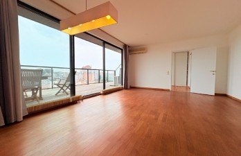 Saint-Gilles, Rue Defacqz 75, à deux pas de la place du chatelain, des commerces et des transports en communs, dans un immeuble calme, au 7ème (dernier étage), très beau penthouse de +/- 70m², en excellent état, parquet partout et offrant : Séjour très lumineux de +/-40m², cuisine super-équipée, 2 chambres (11 et 10m²), salle de bains et salle de douche, terrasse de 75m², bureau de 6m². Double vitrage. Vidéophones. Climatisation. Porte blindée. Parking pour 150?/mois. PEB: F. Libre Immédiatement ! A saisir !