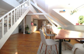Ixelles, à proximité de la place Flagey et des étangs d'Ixelles, à deux pas des commerces et des transports en communs, magnifique penthouse meublé de 135m², parquet partout et offrant: un grand séjour de 50m² donnant sur une cuisine américaine super équipée, 2 chambres (16 m² et 17m²), salle de bains avec douche. Terrasse orientée plein sud. Double vitrage. Vidéophone. Thermostat. Charges: 200?/mois (communs et entretien chaudière).Libre 01/01/2026. A saisir !