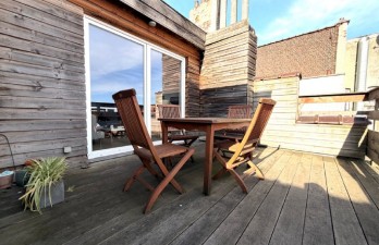 A proximité de la Place Meiser, de ses commerces et transports en communs, dans une petite copropriété, au 2e étage, superbe duplex de +/-110m², lumineux et offrant: séjour de +/- 50m², cuisine super-équipée ouverte sur un grand séjour avec accès à la terrasse de +/- 15m². 2 chambres (+/- 17m² et 12m²) avec salle de bains privatives. vidéophone. Cave. PEB : D. Libre le 1/03/2026. A saisir !