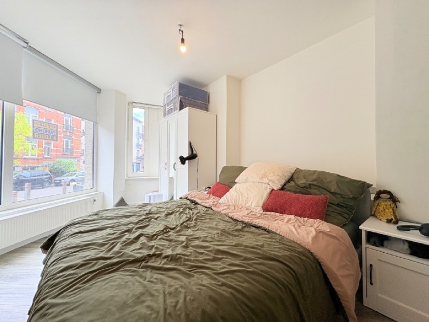 Schaerbeek, à deux pas du Parc Josaphat, dans une copropriété calme, superbe appartement de +/-70m², tres bon état, parquet partout et offrant: Séjour, cuisine super-équipée, chambre de +/- 30m², salle de douche. Double vitrage. Parlophone. PEB: F. Charges de 50€/mois. Pariking disponible pour 150/mois. Libre le 01/06. A saisir!