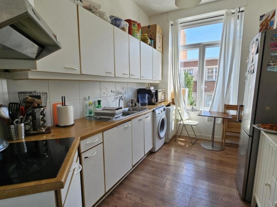 Uccle, à proximité du Parvis Saint-Pierre, des commerces et transports en commun, Chaussée d'Alsemberg 809, magnifique appartement de +/- 70m² au premier étage d'un petit immeuble sans ascenseur, en bon état, très lumineux, parquet partout et offrant : hall d'entrée avec vestiaire, beau séjour avec accès à la grande terrasse de +/- 40m², cuisine équipée, 1 chambre, salle de douche. Cave. Double vitrage. Chaudière individuelle. Petite copropriété avec peu de charges. PEB: F. Actuellement loué 950€/mois. A découvrir !